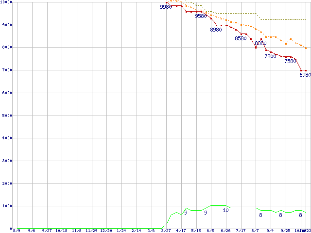 | HD642JJ (640GB,16MB)の価格推移 | | | (2007年8月9日~2008年10月23日) |