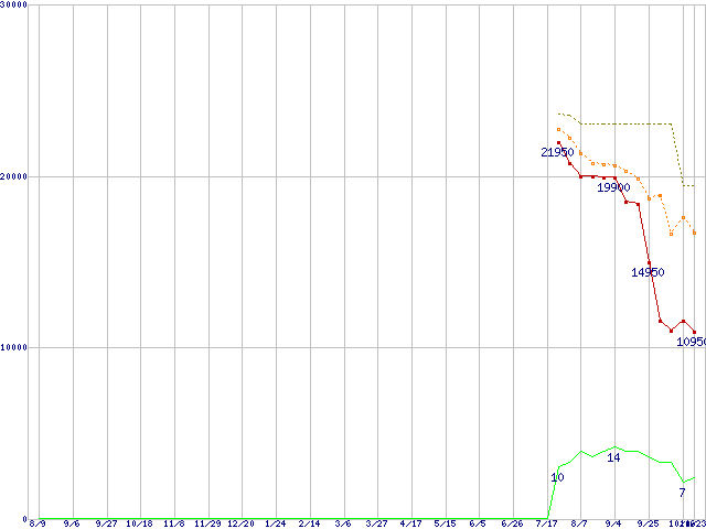 | WD3200BEKT (320GB,16MB)の価格推移 | | | (2007年8月9日~2008年10月23日) |