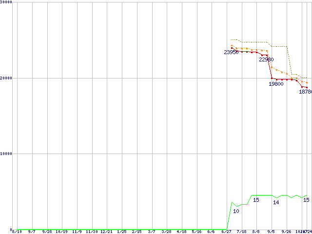 | Phenom X4 9350e (2.0GHz,L2 512KB×4,L3 2MB)の価格推移 | | | (2007年8月10日~2008年10月24日) |