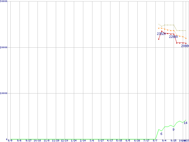 | WD1500HLFS (150.0GB)の価格推移 | | | (2007年8月9日~2008年10月23日) |