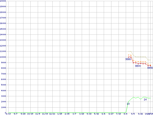 | Athlon X2 5400 Black Edition (2.8GHz,L2 512KB×2)の価格推移 | | | (2007年8月10日~2008年10月24日) |