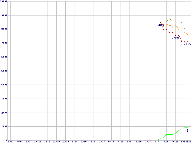 | WD2500BEVT (250GB,8MB)の価格推移 | | | (2007年8月9日~2008年10月23日) |