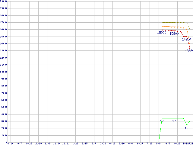 | Core 2 Duo E7300 (2.66GHz,L2 3MB)の価格推移 | | | (2007年8月10日~2008年10月24日) |