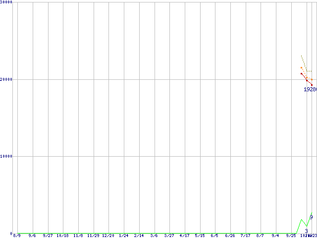 | ST31500341AS (1.5TB,32MB)の価格推移 | | | (2007年8月9日~2008年10月23日) |
