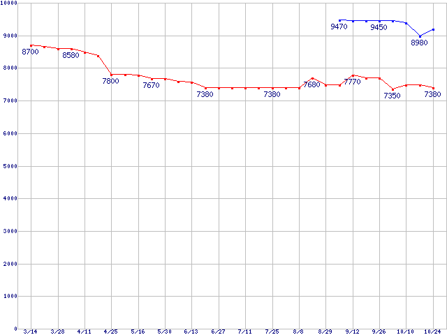 Socket AM2 (HyperTransport,Dual Core,TDP 45W)の最安値推移
