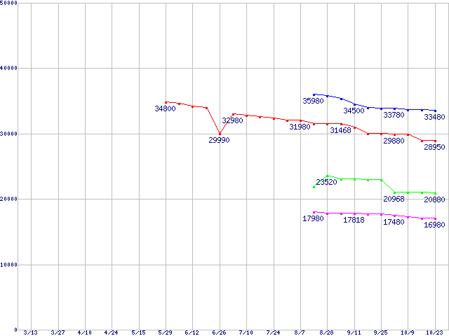 WD VelociRaptor (10000rpm,3Gb/s,16MB)の最安値推移