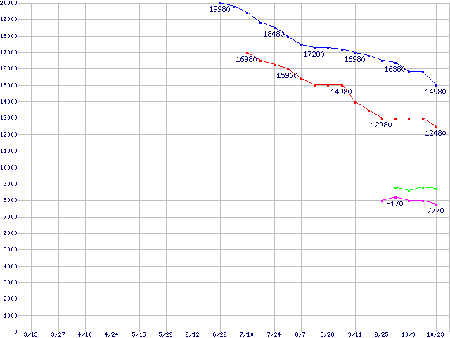 WD VelociRaptor (10000rpm,3Gb/s,16MB)の最安値推移