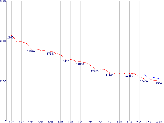 WD Caviar Blue (7200rpm,3Gb/s,16MB)の最安値推移