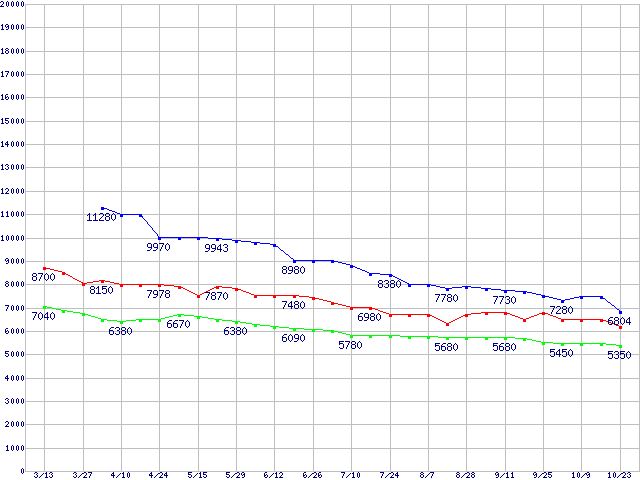 WD Caviar Blue (7200rpm,3Gb/s,16MB)の最安値推移
