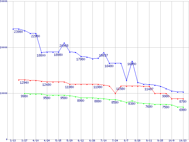 Spinpoint F1 (7200rpm,3Gb/s)の最安値推移