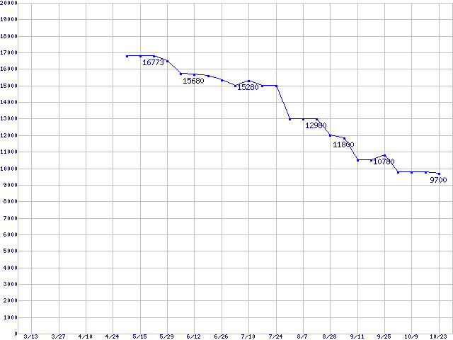 Spinpoint F1 (7200rpm,3Gb/s)の最安値推移