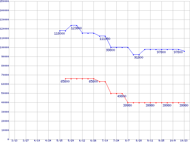 Spinpoint M6 (5400rpm,1.5Gb/s,2.5インチ)の最安値推移