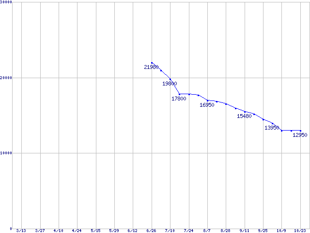 Spinpoint M6 (5400rpm,1.5Gb/s,2.5インチ)の最安値推移