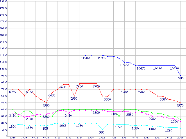 ※点線部は販売店が確認できなかった、または調査データがないことを示します