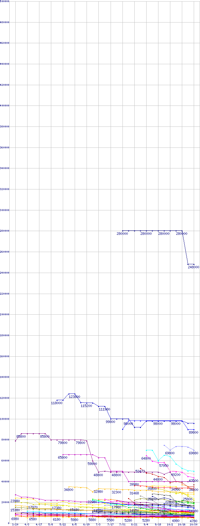 | HDD/SSD主要製品の最安値推移 | | | (2008年3月20日~2008年10月30日) |
