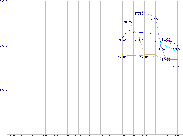 HDD/SSD主要製品(最安値1万5千円~2万円未満)の最安値推移