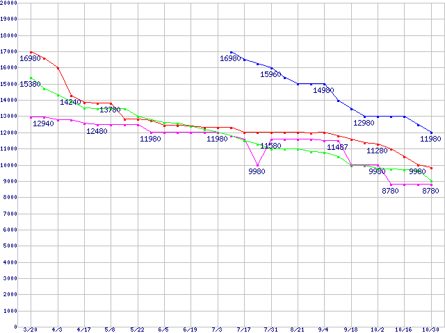 ※点線部は販売店が確認できなかった、または調査データがないことを示します