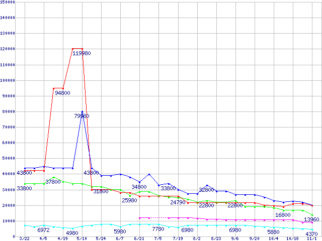メモリ主要製品の最安値推移
