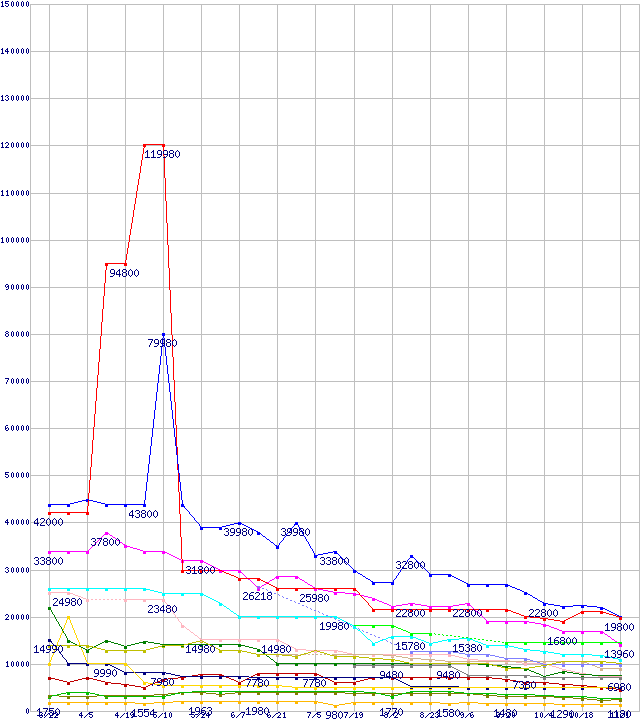 ※点線部は販売店が確認できなかった、または調査データがないことを示します