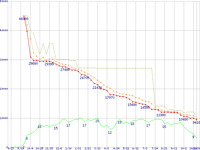 | WD10EACS (1TB,16MB)の価格推移 | | | (2007年8月23日~2008年10月30日) |