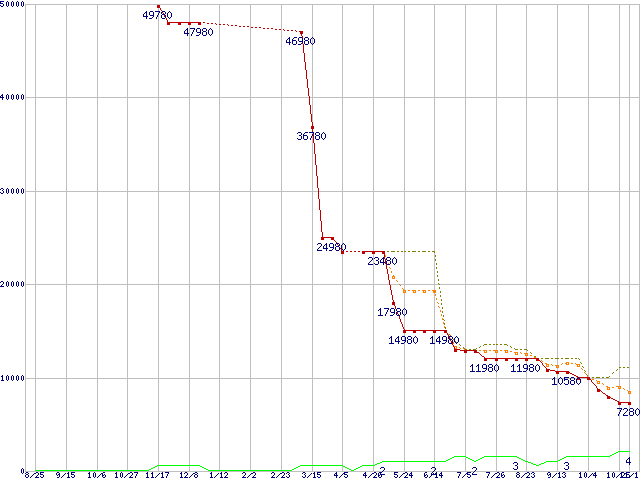 PC3-10600(DDR3-1333) DDR3 SDRAM DIMMの最安値推移