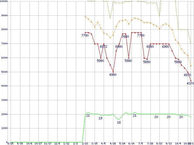 PC2-6400(DDR2-800) DDR2 SDRAM DIMMの最安値推移