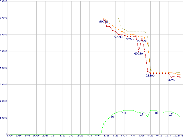 | Core 2 Quad Q9550 (2.83GHz,L2 6MB×2)の価格推移 | | | (2007年8月24日~2008年10月31日) |