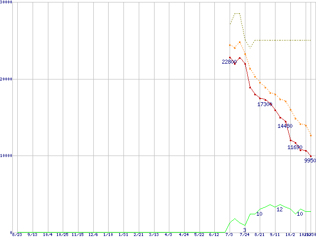 | HTS723232L9A360 (320GB,16MB)の価格推移 | | | (2007年8月23日~2008年10月30日) |