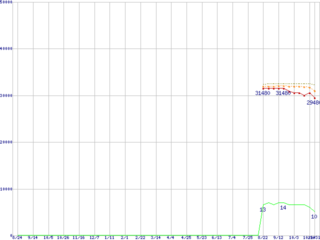| Core 2 Quad Q9400 (2.66GHz,L2 3MB×2)の価格推移 | | | (2007年8月24日~2008年10月31日) |