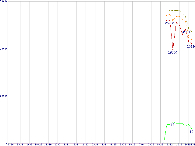 | Core 2 Quad Q8200 (2.33GHz,L2 2MB×2)の価格推移 | | | (2007年8月24日~2008年10月31日) |