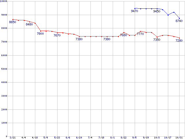 Socket AM2 (HyperTransport 3.0,Quad Core)の最安値推移