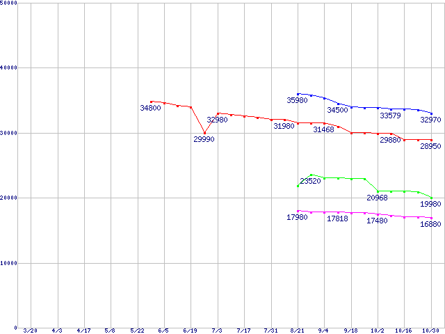 WD VelociRaptor (10000rpm,3Gb/s,16MB)の最安値推移