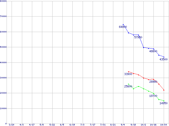 | PATRIOT Extreme Performance Warp Solid State Disk (SSD,3Gb/s,2.5インチ)の最安値推移 | | | (2008年3月20日~2008年10月30日) |