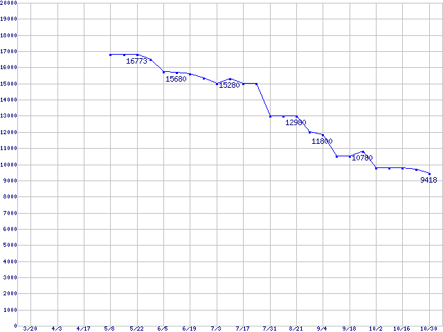 Spinpoint F1 (7200rpm,3Gb/s)の最安値推移