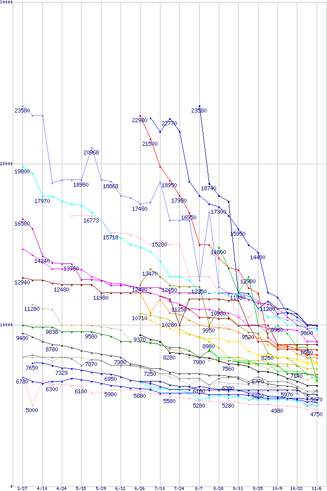 ※製品名をクリックすると個別のグラフを表示します ※点線部は販売店が確認できなかった、または調査データがないことを示します |
