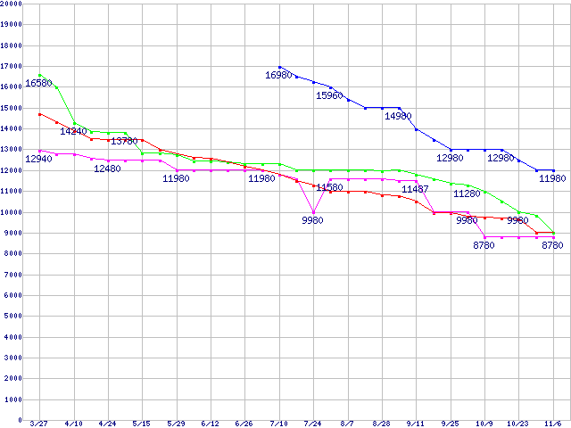 HDD 750GB~1TB未満の最安値推移