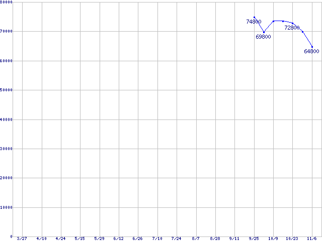 HDD/SSD 30GB~80GB未満の最安値推移