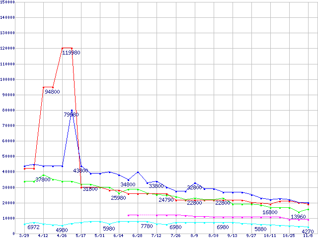 メモリ主要製品の最安値推移