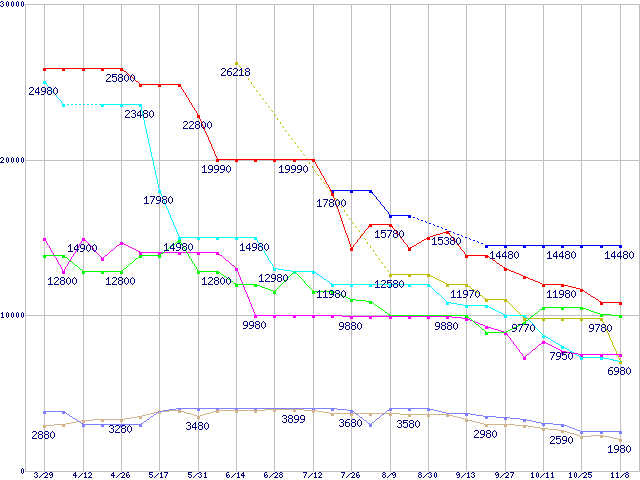 ※点線部は販売店が確認できなかった、または調査データがないことを示します