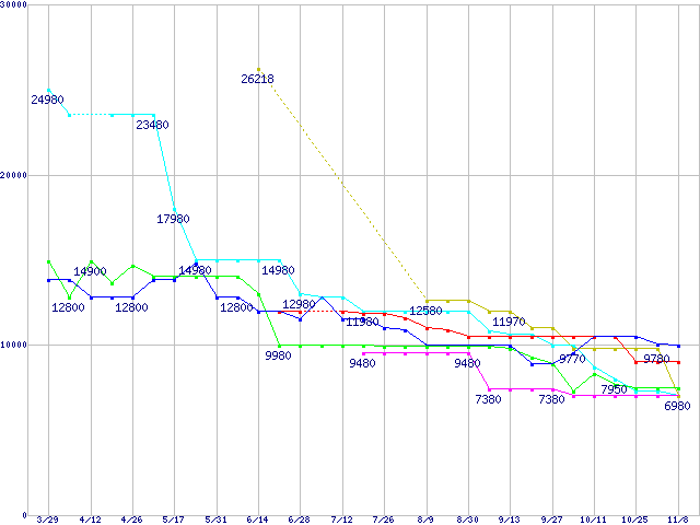 メモリ主要製品(最安値5千円~1万円未満)の最安値推移