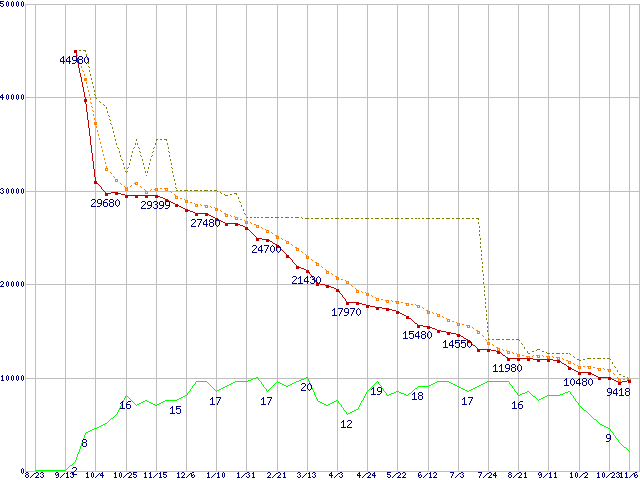 | WD10EACS (1TB,16MB)の価格推移 | | | (2007年8月23日~2008年11月6日) |