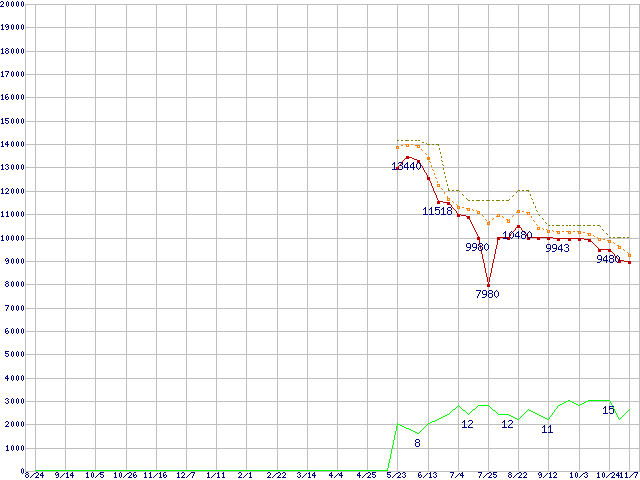 | Athlon X2 5600 (2.9GHz,L2 512KB×2)の価格推移 | | | (2007年8月24日~2008年11月7日) |
