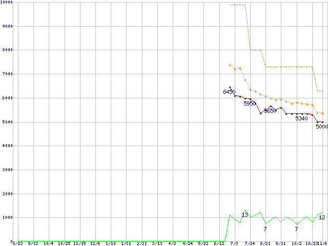 | HTS543216L9A300 (160GB,8MB)の価格推移 | | | (2007年8月23日~2008年11月6日) |