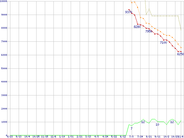 | HTS543225L9A300 (250GB,8MB)の価格推移 | | | (2007年8月23日~2008年11月6日) |