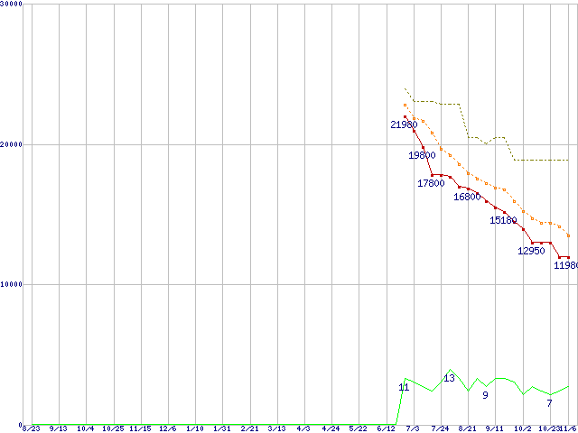 | HM500LI (500GB,8MB)の価格推移 | | | (2007年8月23日~2008年11月6日) |