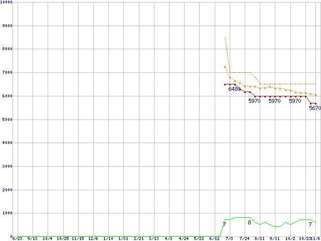 | WD1600BEVT (160GB,8MB)の価格推移 | | | (2007年8月23日~2008年11月6日) |