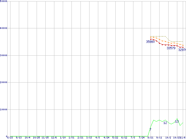 | WD3000HLFS (300.0GB)の価格推移 | | | (2007年8月23日~2008年11月6日) |