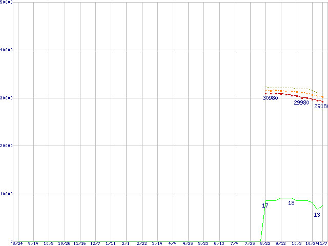 | Core 2 Duo E8600 (3.33GHz,L2 6MB)の価格推移 | | | (2007年8月24日~2008年11月7日) |