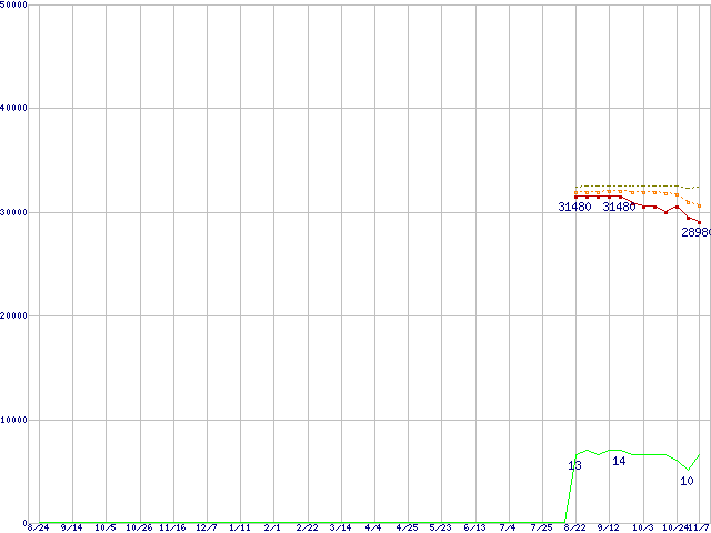 | Core 2 Quad Q9400 (2.66GHz,L2 3MB×2)の価格推移 | | | (2007年8月24日~2008年11月7日) |