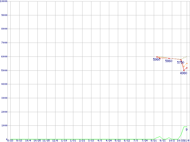 | HDT721032SLA360 (320GB,16MB)の価格推移 | | | (2007年8月23日~2008年11月6日) |